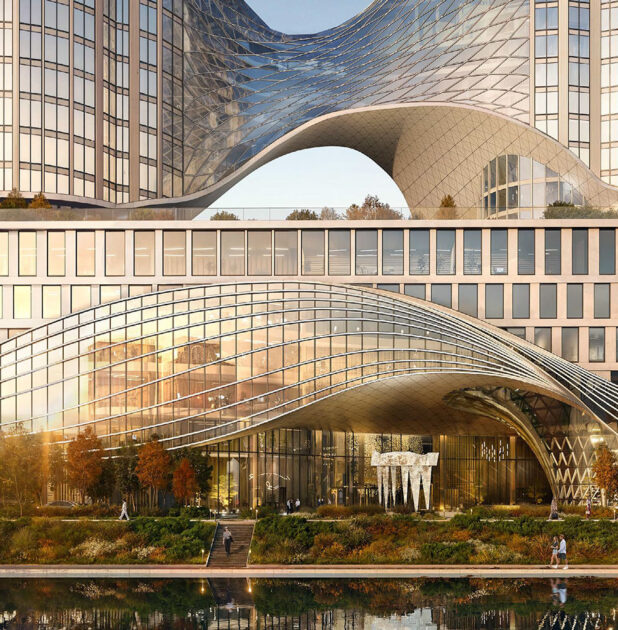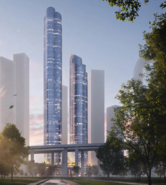 AURUS Residences станет рекордсменом среди жилых небоскрёбов России: высота комплекса достигнет 394,6 м. Архитектурный проект от бюро APEX предусматривает две монументальные башни — на 83 и 96 этажей, — объединённые общим стилобатом.